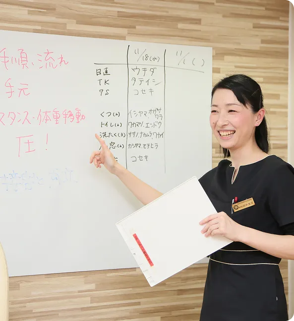 セラピストとして常に上を目指せるように、職位ごとに目標が設定され、あなたの可能性を最大限に引き出します。トレーナーや上位職のセラピストによる講習会も随時開催され、セラピストとして成長し続けられる環境があります。